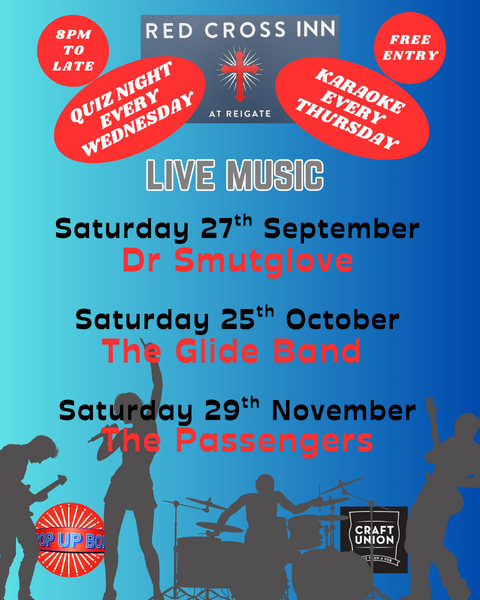 Since reopening in February '24, Red Cross Inn Reigate have supported weekly Live Music with over 70 bands & DJ's livening up Reigate's weekends! Live music will now only be on the last Saturday night of each month.